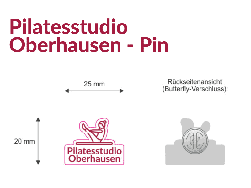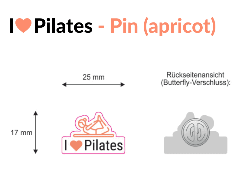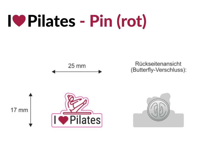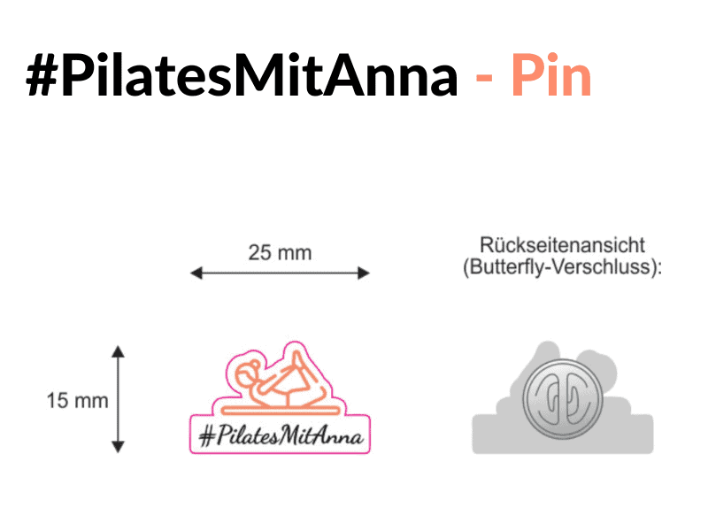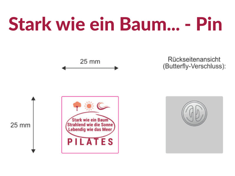 Einmalige Ansteck-Pins mit Pilates-Botschaft als Metallpin und Acrylbeschichtung.